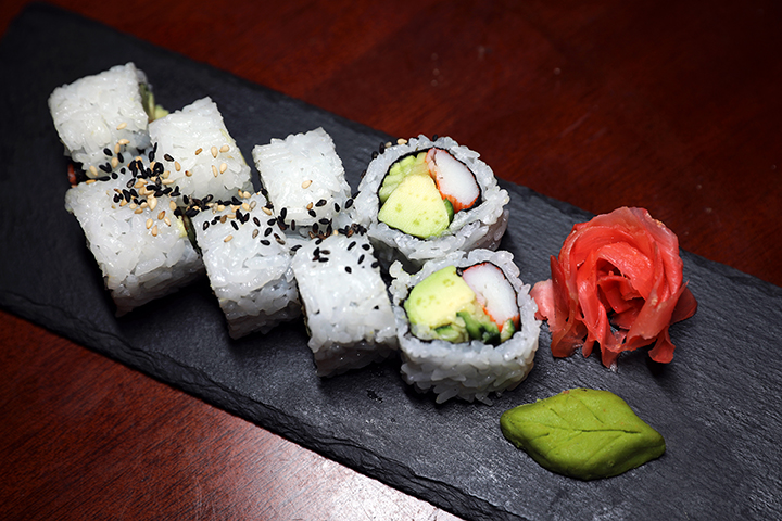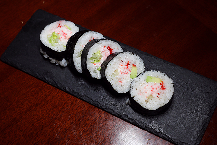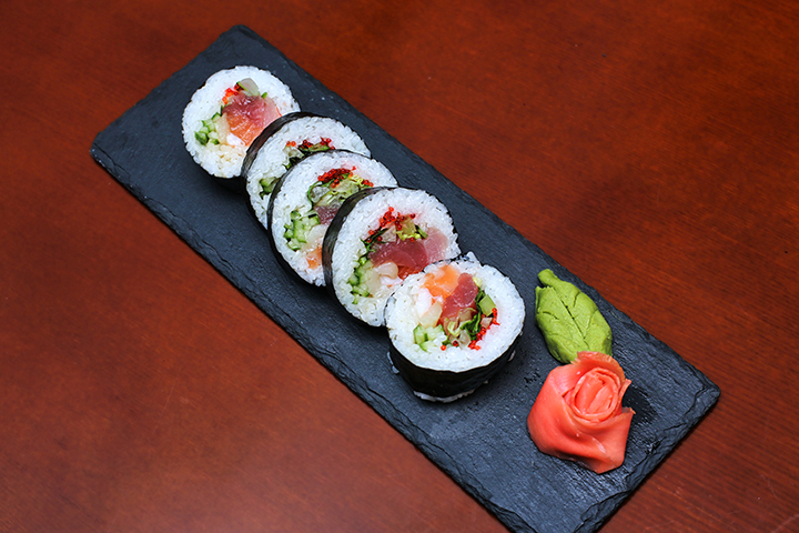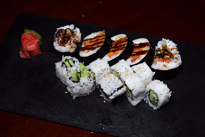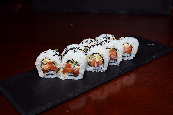 Smokey Teriyaki Salmon Roll, Spicy Tuna Roll, House California Roll, Dynamite Roll, Avocado Roll (3pcs), Cucumber Roll(3pcs)