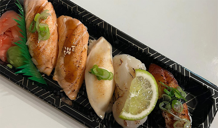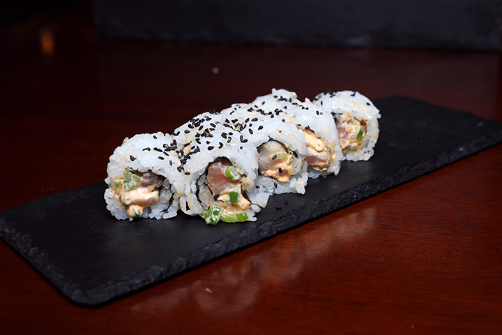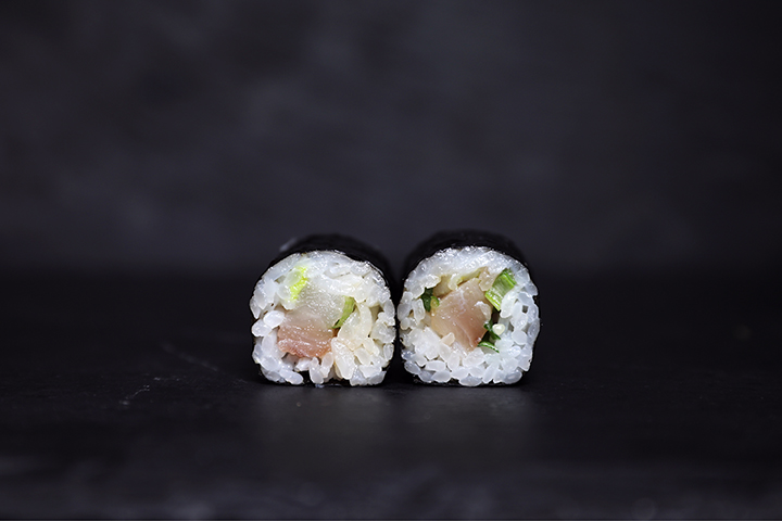 Fresh sushi (5pcs), Spicy Salmon or Spicy Tuna Roll (8pcs)