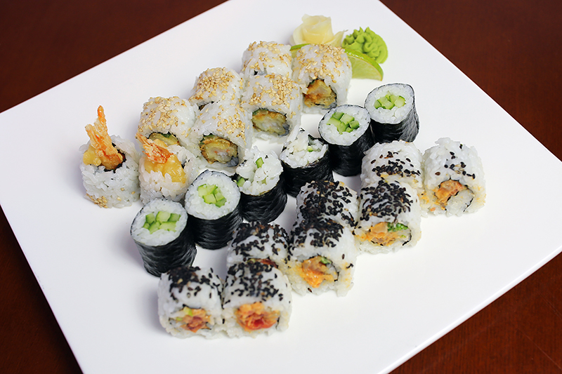 Dynamite (8pcs), Cucumber Roll (6pcs), Spicy Salmon or Spicy Tuna Roll (8pcs)