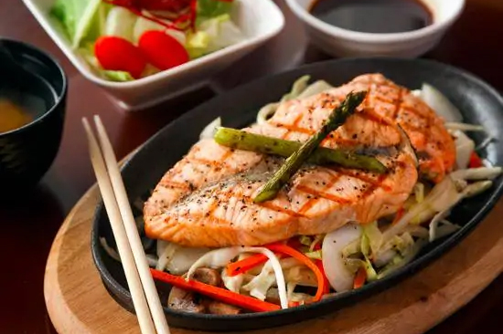 choice of grilled salmon or beef steak or chicken breast or Bulgogi or Kalbi