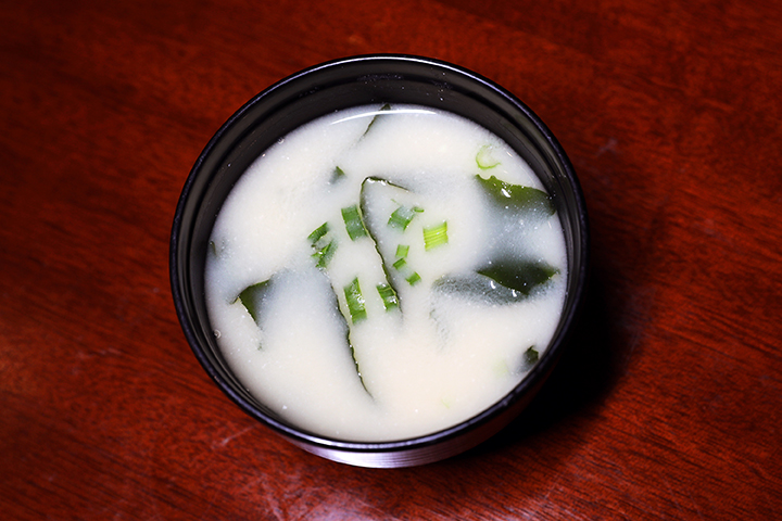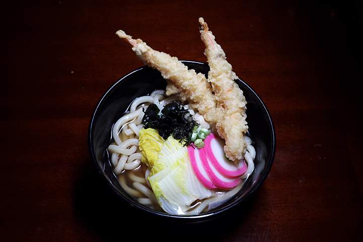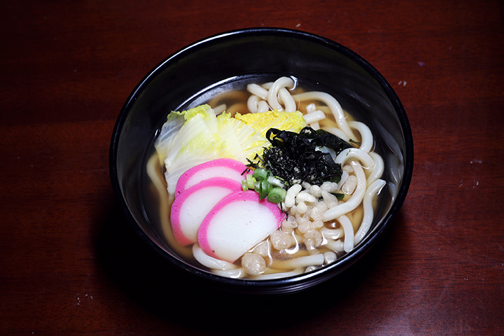 Japanese thick noodle soup made from light broth based on bonito and soy sauce