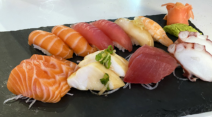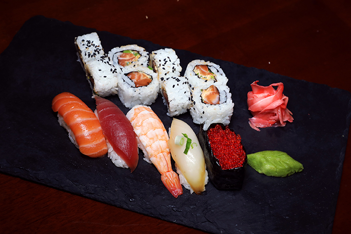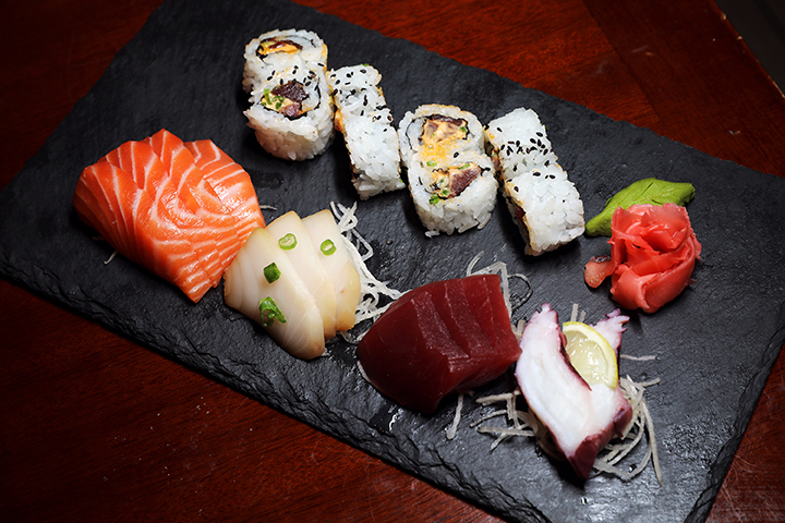 Fresh sushi (6pcs), fresh sashimi (12pcs)