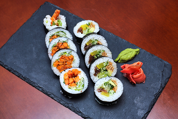 The YAM Topped with Avocado Roll, Veggie Futomaki Roll, Avocado Cucumber Roll, Inari Roll, Avocado Roll, Cucumber Roll
